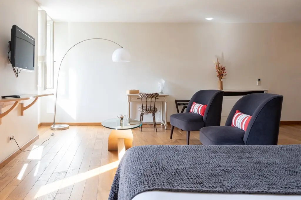 Découvrez notre Studio, d’une surface agréable de 35m2 offrant une vue sur le charmant village d’Ainhoa. Ce Studio dispose d’une petite cuisine bien équipée et pourvue de plaques de cuisson, d’un réfrigérateur, d’un four et d’ustensiles. Profitez du confort d’un lit king size et d’une salle de bain privée, d’une télévision à écran plat, d’un bureau, d’une wifi gratuite et climatisation réversible.